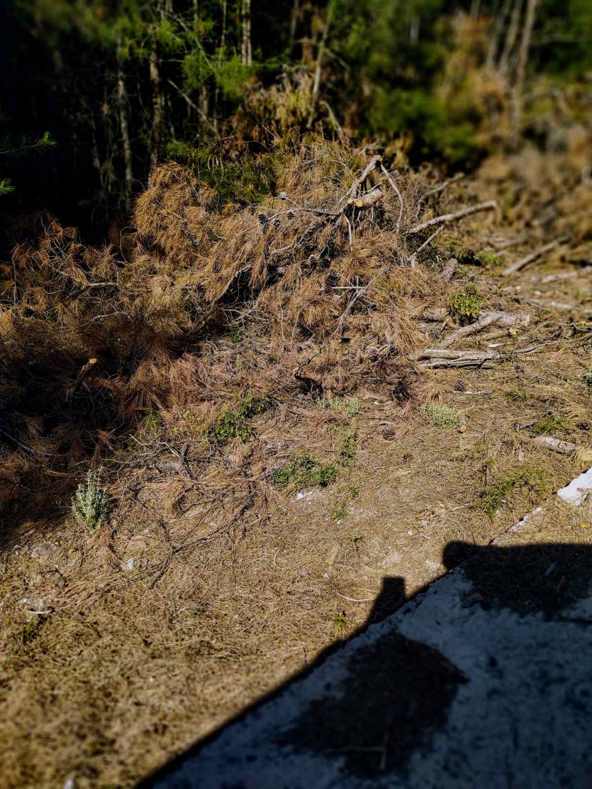 4. Καθαρίστηκε,  σε ορισμένα σημεία, κατά μήκος των δασικών δρόμων  η μάζα των απορριμμάτων ξηρής δασικής ύλης, σε βάθος 10 μ. από το δρόμο και κλαδεύτηκε ο υποόροφος των πεύκων σε ύψος 5 μ. σε κάποια σημεία των πρανών των δασικών δρόμων, αντί του πλήρους καθαρισμού της δασικής βλάστησης σε βάθος 25 μέτρων από τα πρανή, για τον οποίο είχε δεσμευτεί τι 2019 το Δασαρχείο(επισύναψη).