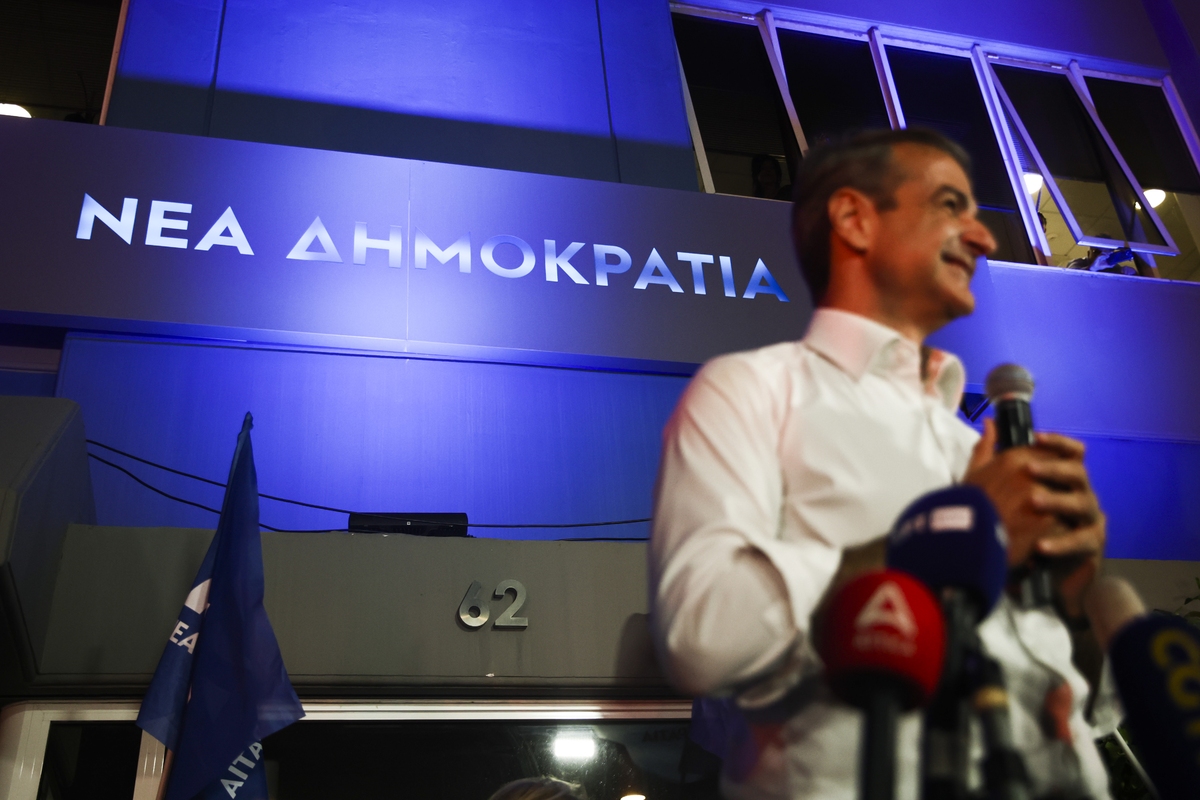 New Democracy Party leader Kyriakos Mitsotakis, celebrates with Party fans after winning the Greek elections, on June 25, 2023 / Dimitris Kapantais / SOOC