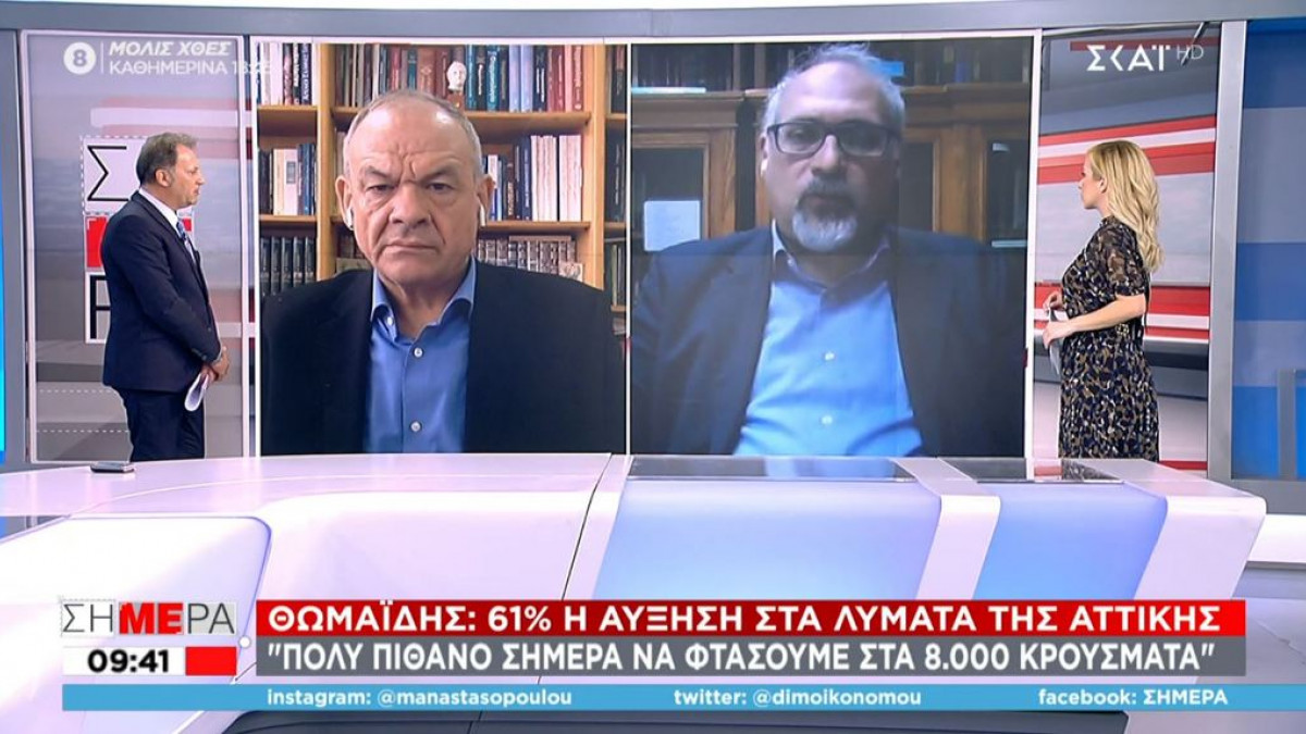 Συγκεκριμένα μιλώντας στην τηλεόραση του ΣΚΑΪ και την εκπομπή «Σήμερα», δήλωσε ότι η αύξηση του ιικού φορτίου εκτιμάται πως θα ολοκληρωθεί μέσα στις επόμενες 8 με 10 ημέρες στην Αττική και μέσα στο επόμενο 15νθήμερο σε όλη την Ελλάδα.