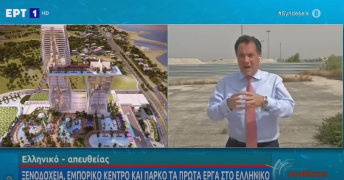 Την καριέρα του στις τηλεοπωλήσεις θυμήθηκε ο υπουργός Ανάπτυξης, Άδωνις Γεωργιάδης το πρωί της Τρίτης μέσα από τη συχνότητα της κρατικής τηλεόρασης από τις εγκαταστάσεις του Ελληνικού, με αφορμή την υπογραφή της μεταβίβασης της Ελληνικό ΑΕ στη Lamda Development από τον υπουργό Οικονομικών, Χρήστο Σταϊκούρα και τον ίδιο, την προσεχή Παρασκευή.