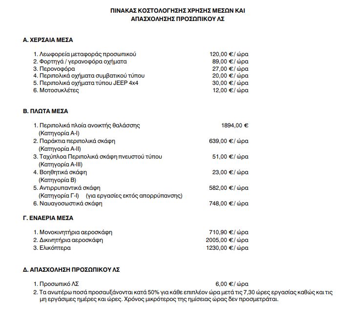 β) Η αριθμ. 1329.1/53/02/14-11-2002 Απόφαση Υπουργών Οικονομίας και Οικονομικών και Εμπορικής Ναυτιλίας “Έγκριση Κανονισμού Αρχηγού Λιμενικού Σώματος, που αφορά τους όρους διάθεσης των μέσων και το είδος των παρεχόμενων υπηρεσιών από το Λ.Σ. σε τρίτους”, όπως τροποποιήθηκε και ισχύει.