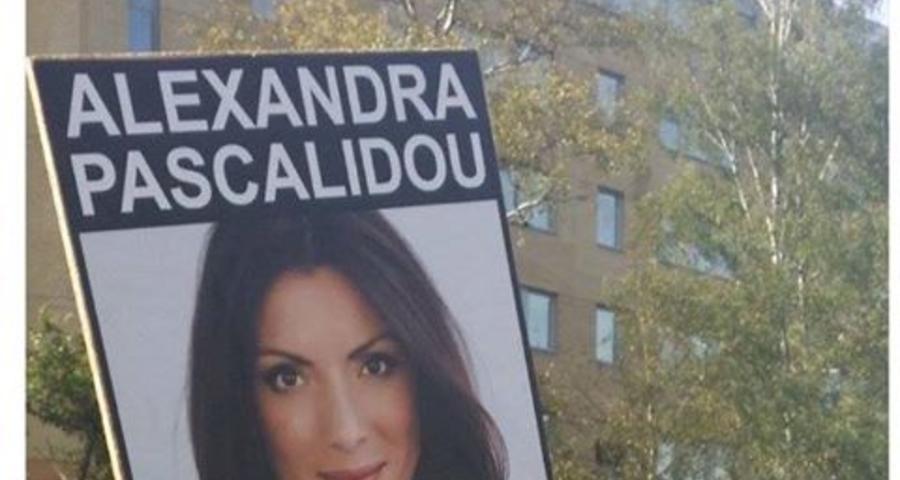 «Αλεξάνδρα Πασχαλίδου, παράνομη!» έγραφαν τα πλακάτ που κρατούσαν οι νεοναζί, όπου απεικονιζόταν η δημοσιογράφος.