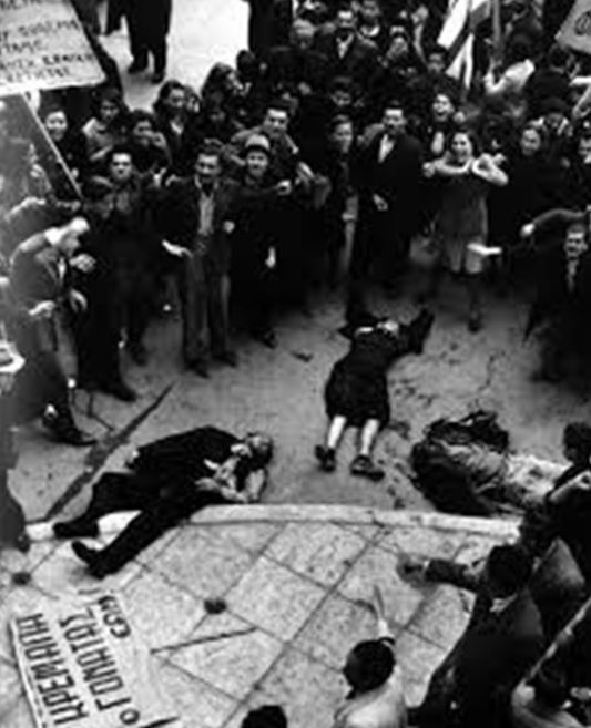Όσο μεγαλειώδης ήταν η ΕΑΜική αντίσταση, τόσο μεγάλο έπρεπε να είναι και το έγκλημα που διαπράχτηκε εναντίον της. Αποφάσισαν να χτυπήσουν απροκάλυπτα. Η ειρηνική διαδήλωση της Αθήνας, αφού πρώτα απαγορεύτηκε, το συλλαλητήριο που τα αιτήματά του δεν ήταν παρά η ομαλότητα, η κατοχύρωση των λαϊκών ελευθεριών μέσω άμεσης διεξαγωγής δημοψηφίσματος και η προετοιμασία διενέργειας ελεύθερων εκλογών, πνίγηκε στο αίμα: 24 νεκροί, 160 τραυματίες.