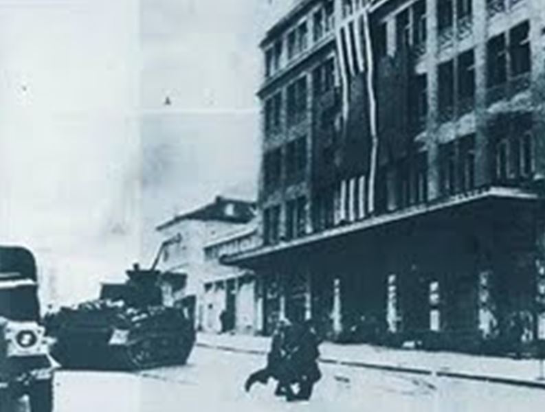 Βρετανικό τανκ βομβαρδίζει τα γραφεία του ΕΑΜ στην οδό Κοραή