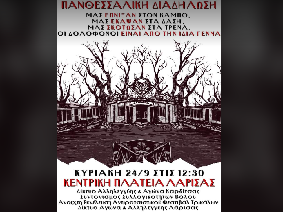 Καλούμε όλους/όλες από την πληγείσα Θεσσαλία αλλά και την υπόλοιπη χώρα σε Πορεία την Κυριακή 24/9 στη Λάρισα!