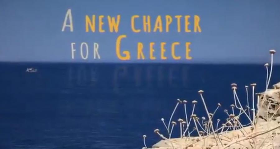 «Ένα νέο κεφάλαιο για την Ελλάδα» αναφέρει αρχικά το βίντεο, συνεχίζοντας πως «η οικονομία αναπτύσσεται ξανά και περισσότερες θέσεις εργασίας δημιουργούνται».