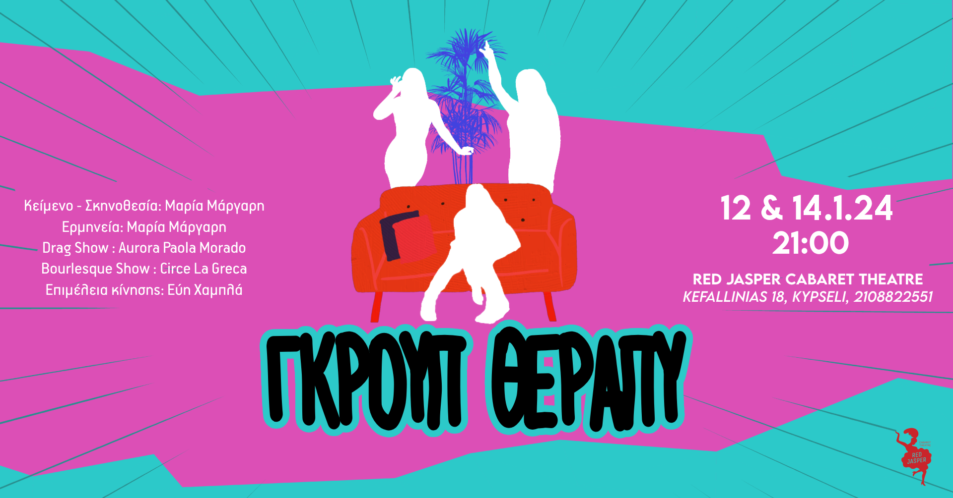 📞 τηλέφωνο Κρατήσεων: 2108822551 / Eισιτήρια στο Ταμείο του θεάτρου Red Jasper Cabaret
