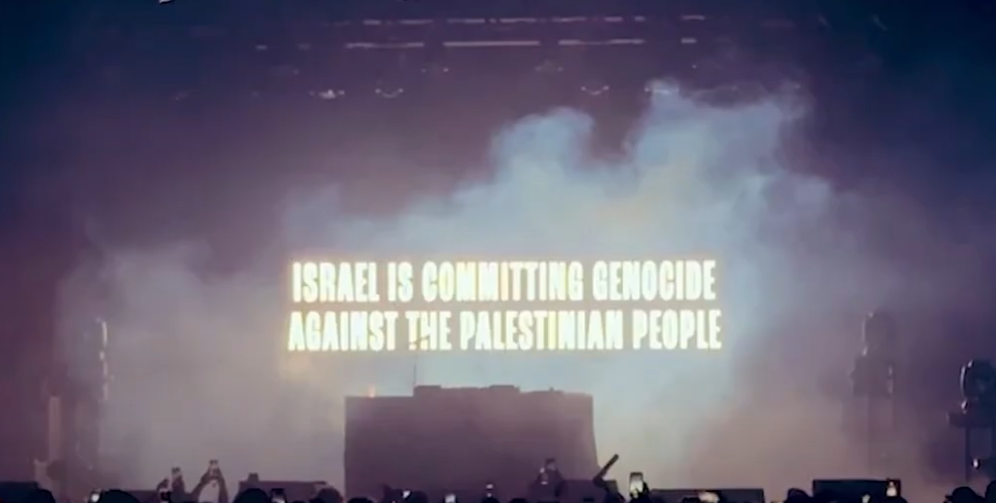 Η μπάντα ώθησε επίσης το κοινό να φωνάξει συνθήματα υπέρ του Παλαιστινιακού λαού όπως «Ελεύθερη, ελεύθερη Παλαιστίνη», λαμβάνοντας πράγματι την ανταπόκριση του κόσμου.