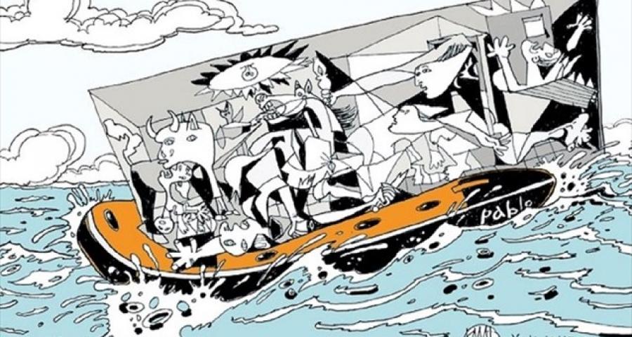 Είκοσι οχτώ Ελληνες γελοιογράφοι, με 120 έργα, χρησιμοποιώντας την παγκόσμια γλώσσα και δύναμη του σκίτσου, της εικόνας και της σάτιρας, ανοίγουν διάλογο για το μεγάλο θέμα του προσφυγικού καταθέτουν τις απόψεις τους και στέλνουν το δικό τους μήνυμα αλληλεγγύης και ανθρωπισμού. Η έκθεση είναι αφιερωμένη στη μνήμη του σκιτσογράφου Γιάννη Καλαϊτζή.