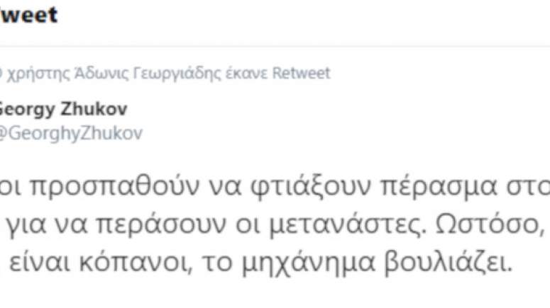 «Τούρκοι προσπαθούν να φτιάξουν πέρασμα στον Εβρο για να περάσουν οι μετανάστες. Ωστόσο, επειδή είναι κόπανοι, το μηχάνημα βουλιάζει» έγραφαν χρήστες του Twitter διακινώντας το τελευταίο 24ωρο ένα βίντεο.
