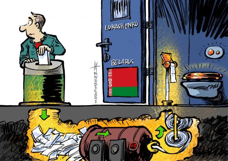 Σκίτσο του Maarten Wolterink (που θα μπορούσε να έχει πολλές σημαίες στη θέση της Λευκορωσίας)