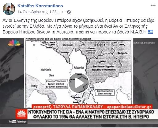 Δεσπόζουσα θέση σε μία από τις αναρτήσεις του Κ. Κατσίφα που ανέβασε στο κατακόρυφο την ένταση στις σχέσεις μεταξύ Αλβανίας και Ελλάδας, είχε ανάρτηση για το ΜΑΒΗ, το Μέτωπο Απελευθέρωσης Βορείου Ηπείρου.