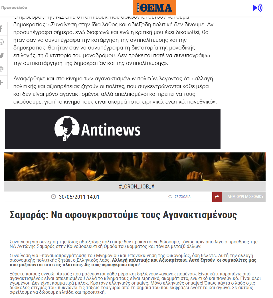 Το δε αγαπημένο του Antinews αποδελτίωνε ακόμα μεγαλύτερο μέρος της τότε ομιλίας του, καθώς ο Αντ. Σαμαράς δεν είχε σταματήσει εκεί: