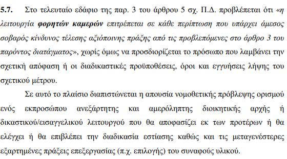 «Σε περίπτωση που οι κάμερες καταγράψουν ποινικό ή πειθαρχικό αδίκημα, το οπτικό υλικό διατηρείται για όσο διάστημα διαρκεί η έρευνα» αναφέρει το δημοσίευμα.