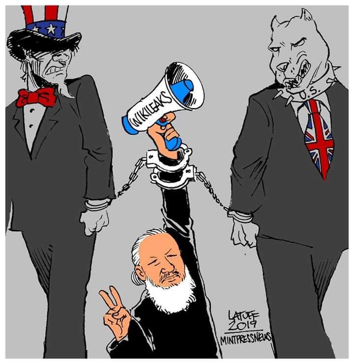 Ο διάσημος σκιτσογράφος, Κάρλος Λατούφ, δημιούργησε το παρακάτω σκίτσο για να απεικονίσει τη σύλληψη του ιδρυτή του Wikileaks, Τζούλιαν Ασάνζ, στο Λονδίνο και την απόπειρα να εκδοθεί στις ΗΠΑ.