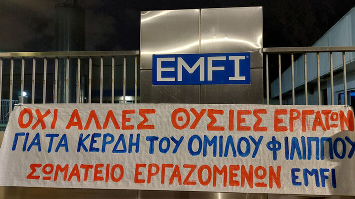«Το Διοικητικό Συμβούλιο καταγγέλλει την απαράδεκτη ενέργεια της εργοδοσίας της EMFI, που τη Δευτέρα 9 Οκτωβρίου 2023, προχώρησε σε 3 στοχευμένες απολύσεις. Αφορούν συναδέλφους από τα τμήματα της αποθήκης, της παραγωγής και από το τεχνικό τμήμα.