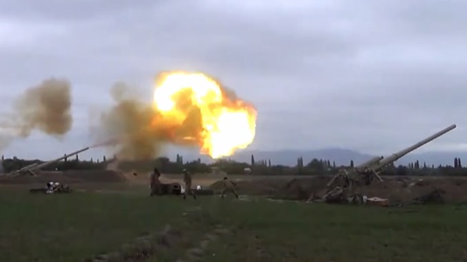 Δημοσίευμα του Russia Today, που επικαλείται πηγές της Αρμενίας, αναφέρει πως το τουρκικό μαχητικό αεροσκάφος απογειώθηκε από βάση εντός του Αζερμπαϊτζάν .Υπενθυμίζεται ότι η Τουρκία είχε κάνει ξεκάθαρο από την αρχή των συγκρούσεων στην αυτονομιστική περιφέρεια Ναγκόρνο-Καραμπάχ ανάμεσα σε Αζερμπαϊτζάν και Αρμενία ότι τάσσεται στο πλευρό του Αζερμπαϊτζάν.