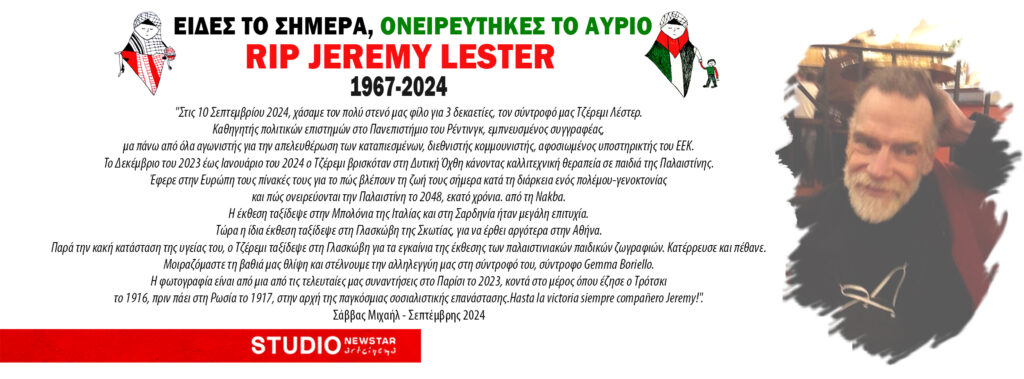Από το Δεκέμβριο του 2023 έως τον Ιανουάριο του 2024, ο Τζέρεμι Λέστερ, καθηγητής Πολιτικών Επιστημών στο Πανεπιστήμιο του Ρέντινγκ, εμπνευσμένος συγγραφέας και αγωνιστής για την απελευθέρωση των καταπιεσμένων, βρισκόταν στη Δυτική Όχθη, κάνοντας καλλιτεχνική θεραπεία σε παιδιά της Παλαιστίνης.