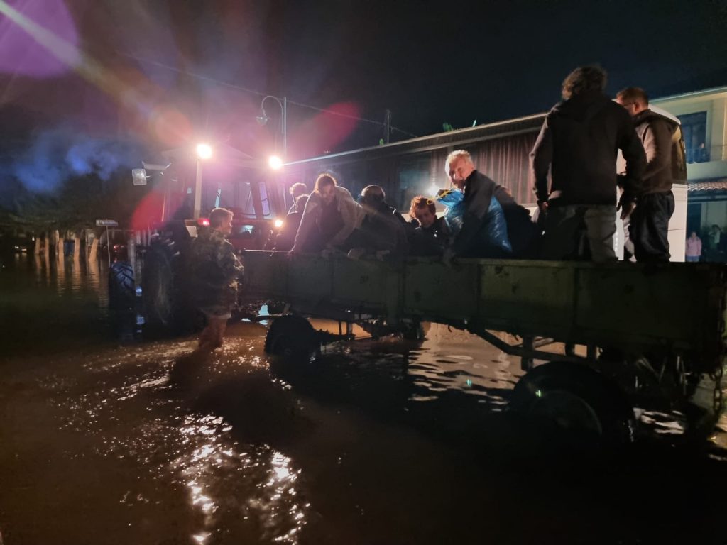 Τρίκαλα: Διάσωση παιδιών και ηλικιωμένων με γκρέιντερ – Εγκλωβισμένοι σε Φαρκαδόνα και Κεραμίδι