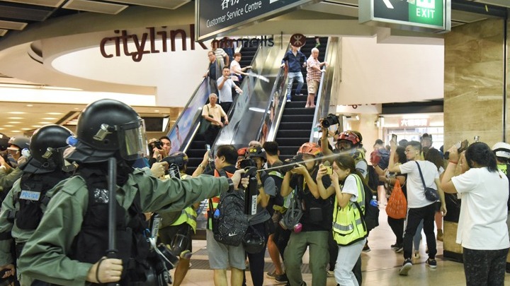 Όπως αναφέρει το Αθηναϊκό Πρακτορείο, οι τραυματισμοί αυτοί είναι αποτέλεσμα ενός ακόμη Σαββατοκύριακου βίας στην πρώην βρετανική αποικία. Μονάδες αντιμετώπισης ταραχών της αστυνομίας εισέβαλαν σε πολλά εμπορικά κέντρα γεμάτα με οικογένειες και παιδιά στο ανατολικό προάστιο Ταϊκού Σιονγκ χθες, ανάμεσά τους και το Citi Plaza.