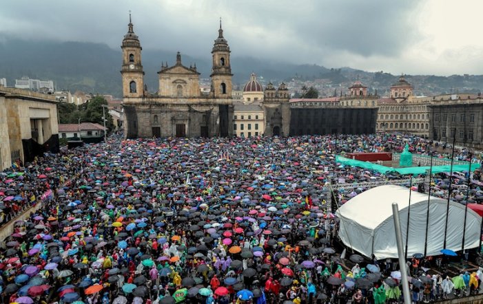 Εν τω μεταξύ, ιστορικών διαστάσεων χαρακτήρισε ο αριστερός κολομβιανός Τύπος και διεθνή μέσα, την κινητοποίηση του λαού της Κολομβίας χτες, Πέμπτη, και προβλέπει συνέχιση των κινητοποιήσεων «κατά το πρότυπο της Χιλής». Οι ειρηνικές κινητοποιήσεις, που συνοδεύτηκαν από γενική απεργία, ήταν οι μαζικότερες εδώ και χρόνια σε 185 πόλεις της χώρας – μεταξύ των οποίων Μπογκοτά, Μεντεγίν, Κάλι, Καρταγένα, Σάντα Μάρτα – οι δρόμοι γέμισαν εργάτες, νεολαίους και ιθαγενείς. Πολλοί παρέμειναν μέχρι τα ξημερώματα στους χώρους συγκέντρωσης, μετατρέποντας τις διαμαρτυρίες σε 48ωρες. Η κυβέρνηση επέβαλε απαγόρευση κυκλοφορίας μετά τις 19:00