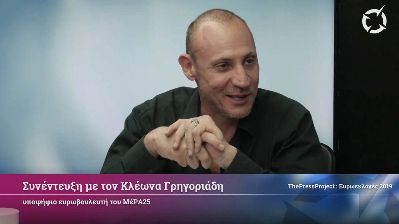 Ο υποψήφιος ευρωβουλευτής του ΜέΡΑ25 και ηθοποιός, Κλέων Γρηγοριάδης, έρχεται στην τηλεόραση του TPP, σε μία ζωηρή συνέντευξη για τους στόχους του ίδιου και του ΜέΡΑ25 στις επερχόμενες ευρωεκλογές, αλλά και για την ευρύτερη πολιτική σκηνή, για τη σχέση του με τον Γιάνη Βαρουφάκη, τη διαπραγμάτευση του 2015, το δημοψηφισμα και «όλες τις κοινωνικές ομάδες που είναι υπέρ του ναι», για τα κανάλια και τους εργολάβους που επί δεκαετίες νέμονται το δημόσιο χρήμα, για την Ευρώπη και την προχωρημένη αποδόμησή της από τη λιτότητα.