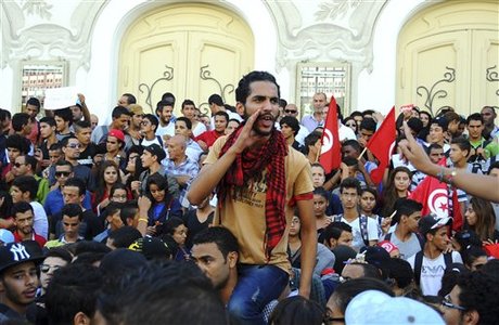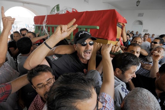Χιλιάδες πολίτες διαδήλωσαν στην πόλη Σίντι Μπουζίντ, όπου χθες σκοτώθηκαν επτά αστυνομικοί σε συγκρούσεις με ένοπλους ακραίους ισλαμιστές