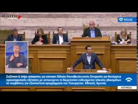Ο Αλέξης Τσίπρας τόνισε ότι το «ναι» της Νέας Δημοκρατίας και του ΠΑΣΟΚ για τη σύσταση προανακριτικής επιτροπής για τον Γιάννο Παπαντωνίου «δεν τους ξεπλένει» για τη στάση που έχουν τηρήσει τόσα χρόνια. Αποκάλεσε φυγόμαχους τους Μητσοτάκη και Γεννηματά και υποστήριξε πως καμία υπόθεση διαπλοκής «δεν θα πέσει κάτω».