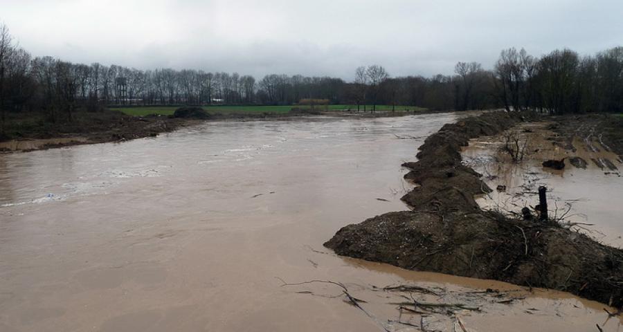 Στην γέφυρα του Πηνειού στο Βαλομάνδρι πριν από λίγη ώρα υπερχείλισε από τη βασική κοίτη και διαχέεται προς τα χωράφια και εντός μεγάλων αναχωμάτων.