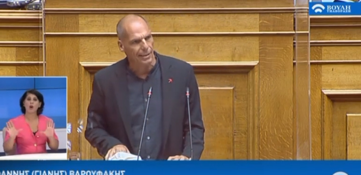 Απευθυνόμενος στο ερώτηα του γγ. του ΚΚΕ Δημήτρη Κουτσούμπα αν «όλα αυτά να γίνουν αγγελικά πλασμένα εντός αυτής της καθαρά μονοπωλιακής αρπακτικής πολιτικής που έρχεται και από την Ευρωπαϊκή Ένωση», απάντησε πως «εμείς, στο ΜέΡΑ25, ως ευρωπαϊστές απαντάμε στο ερώτημα του κυρίου Κουτσούμπα και λέμε: Όχι δεν γίνεται χωρίς ρήξη, γι’ αυτό εμείς είμαστε το κόμμα της προγραμματικής ρήξης».
