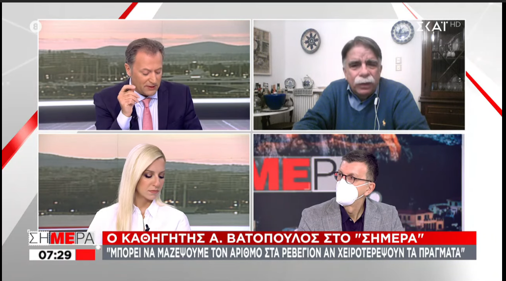 Εάν χειροτερεύσει η επιδημιολογική κατάσταση της χώρας, ενδέχεται να αρθεί το μέτρο που επιτρέπει ρεβεγιόν μέχρι εννέα άτομα, τόνισε ο καθηγητής Μικροβιολογίας στο πανεπιστήμιο Δυτικής Αττικής, Αλκιβιάδης Βατόπουλος, μιλώντας το πρωί της Πέμπτης στον ΣΚΑΙ.