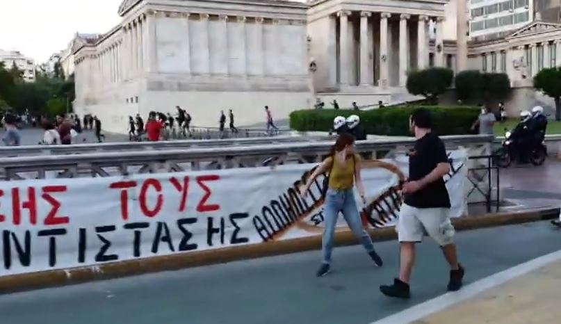 «Περί τα 40 μέλη της Νεολαίας ΣΥΡΙΖΑ βρέθηκαν εγκλωβισμένα για περισσότερη από μισή ώρα, μεταξύ των οποίων ελαφρά τραυματισμένοι και άτομα με αναπνευστικά προβλήματα λόγω της ρίψης δακρυγόνων. Μέλος της Νεολαίας ΣΥΡΙΖΑ χτυπήθηκε απευθείας με χειροβομβίδα κρότου-λάμψης, η οποία εξεράγη στο πόδι της.