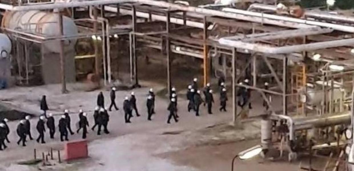 Ισχυρές δυνάμεις των ΜΑΤ απέκλεισαν τις εγκαταστάσεις και σύμφωνα με συνδικαλιστές προχώρησαν σε προσαγωγές εργαζομένων που περιφρουρούν τον πολύμηνο αγώνα τους ενάντια στα σχέδια απολύσεων. «Εκατοντάδες εργαζόμενοι βρίσκονται κυριολεκτικά περικυκλωμένοι από τις αστυνομικές δυνάμεις και γαντζωμένοι σε έναν πύργο υψηλής επικινδυνότητας» κατήγγειλε η ΓΣΕΕ κάνοντας λόγο για ανεπίτρεπτη αστυνομική επιχείρηση.