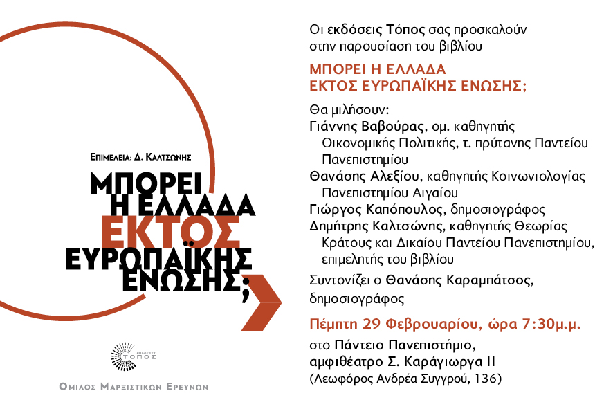Τη συζήτηση συντονίζει ο δημοσιογράφος Θανάσης Καραμπάτσος.