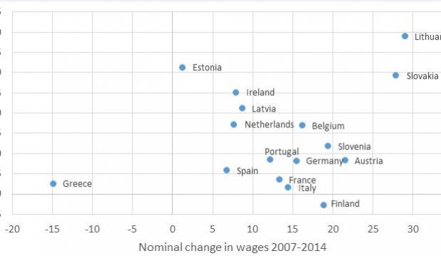 But this blog demonstrates that it is unlikely to easily help the economy much as exports do not react much to changes in wage costs due to the sclerotic economy.