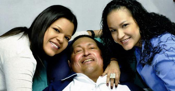 Στις φωτογραφίες ο Τσάβες εμφανίζεται χαμογελαστός στο κρεβάτι του νοσοκομείου να διαβάζει την εφημερίδα «Granma», του Κομμουνιστικού Κόμματος της Κούβας, έχοντας στο πλευρό του τις κόρες του.