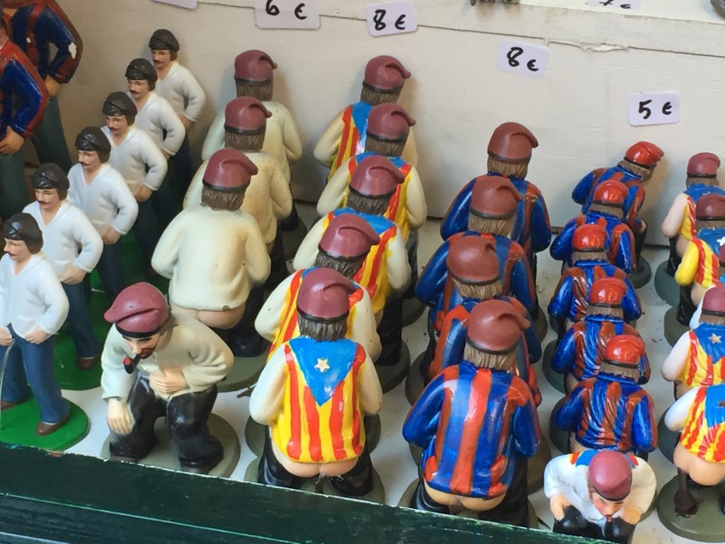 Είχα δει παίκτες της Μπάρσα, διεθνείς πολιτικές μορφές, σταρ του σινεμά να παίρνουν τη μορφή του. Στις προθήκες και στους πάγκους. Το απαιτεί το Έθιμο! Και, όταν αποπειράθηκαν να το «στείλουν στα αζήτητα» το 2005, ως προσβλητικό και χυδαίο (έχει και στη Βαρκελώνη μπουρτζόβλαχους που δεν καταλαβαίνουν από εορταστική λαϊκή διάθεση, προφανώς), ξεσηκώθηκε ο κόσμος – με συγκίνησε, έγραψα γι’ αυτό. Με συγκίνησε πως υπερασπίζονταν, πως θέλαν απείραχτο το έθιμό τους. Έθιμο όλων των Καταλανικών Γαιών. Κι ύστερα ήρθε ο αγώνας για ανεξαρτησία. Και πάλι δεν πια είναι έθιμο. Ξανάγινε σύμβολο.