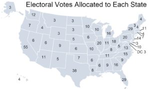 Ο αριθμός των εκλεκτόρων που αναδεικνύει κάθε πολιτεία είναι διαφορετικός, και το αρχικό κριτήριο ήταν ο πληθυσμός και το μέγεθος της.