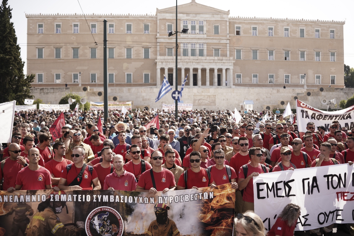 «Μας λες πως αντιβαίνει κάθε λογική και αφήνεις την Ελλάδα να καεί και πνιγεί» και «εμείς για τον πολίτη δίνουμε την ψυχή μας και εσάς ούτε που καίγεται καρφί για τη ζωή μας» ήταν τα συνθήματα των απεργών του Πυροσβεστικού Σώματος, που χειροκροτήθηκαν από τους συγκεντρωμένους.