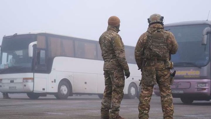 Μισή ώρα αργότερα, άλλα τρία φορτηγά με τη συνοδεία αστυνομικών κατέφθασαν στο σημείο από την αντίθετη κατεύθυνση. Τα ακολουθούσαν ασθενοφόρα, οχήματα του Ερυθρού Σταυρού και αυτοκίνητα των παρατηρητών του ΟΑΣΕ. Ρωσικά τηλεοπτικά μέσα, έδειξαν την ανταλλαγή από την πλευρά των αυτονομιστών των αιχμαλώτων τους, οι οποίοι πλαισιωμένοι από ένοπλους στρατιώτες βάδιζαν προς το σημείο της ανταλλαγής.
