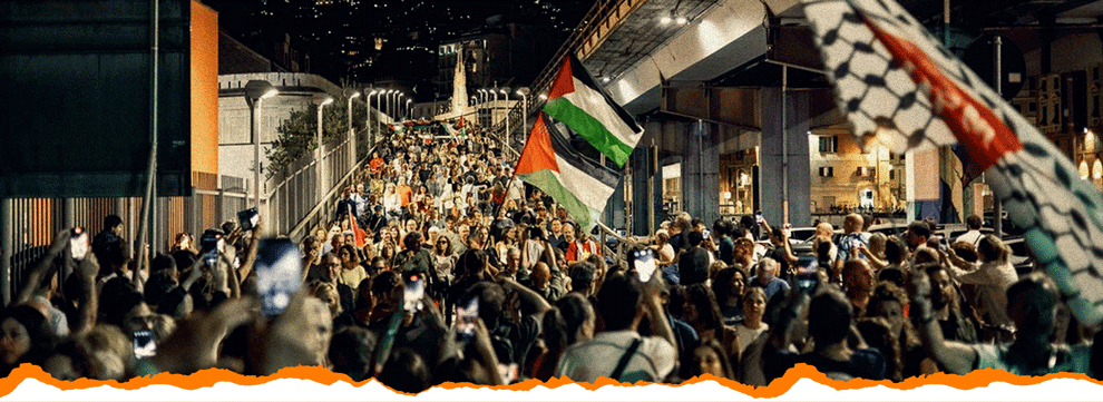 «Αν χαθεί η επικοινωνία με τα σκάφη «έστω και για 20 λεπτά», θα μπλοκαριστούν αμέσως όλες τις αποστολές εμπορευμάτων προς το Ισραήλ», ανεξάρτητα από το περιεχόμενό τους προειδοποίησαν οι λιμενεργάτες της Γένοβας. «Γύρω στα μέσα Σεπτεμβρίου, αυτά τα σκάφη θα φτάσουν κοντά στις ακτές της Γάζας. Αν χάσουμε την επαφή με τα σκάφη μας, με τους συντρόφους μας, έστω και για 20 λεπτά, θα κλείσουμε όλη την Ευρώπη», δήλωσε ο λιμενεργάτης, ένα βίντεο του οποίου έχει κυκλοφορήσει ευρέως στο διαδίκτυο και στα ιταλικά μέσα ενημέρωσης. «Από αυτήν την περιοχή φεύγουν 13 έως 14.000 κοντέινερ κάθε χρόνο για το Ισραήλ, ούτε ένα καρφί δεν θα φύγει πια», τόνισε. ένας εκπρόσωπος του συνδικάτου λιμενεργατών USB σε συγκέντρωση στη προβλήτα του λιμανιού της Γένοβας, που είναι ένα από τα μεγαλύτερα της Ευρώπης.