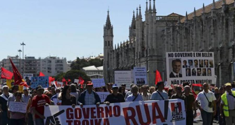 «Η λιτότητα τιμωρεί τους φτωχούς αλλά ωφελεί τους πλούσιους», «Κλέφτης, κλέφτης», μπορούσε να διαβάσει κανείς σε μικρές αφίσες με το πρόσωπο του πρωθυπουργού Πέδρο Πάσος Κοέλιο που κρατούσαν οι διαδηλωτές, ανάμεσά τους δημόσιοι υπάλληλοι, άνεργοι και συνταξιούχοι, οι οποίοι ανέμιζαν κόκκινες σημαίες.