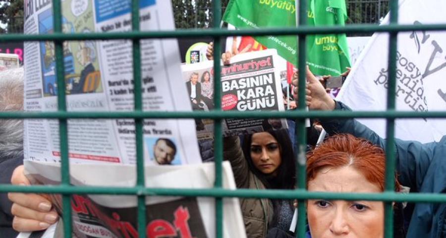 Πολλοί διαδηλωτές κρατούσαν στα χέρια τους το τελευταίο φύλλο της Χουριέτ, που έγραφε «Μαύρη μέρα για τον Τύπο» στο πρωτοσέλιδο. «Είμαι εδώ για να συμπαρασταθώ στους συναδέλφους μου και είμαι περήφανος για αυτό» δήλωσε ο αρχισυντάκτης της τουρκικής εφημερίδας Zaman, Αμπντουλχαμίτ Μπίλιτσι, έξω από τα γραφεία της Χουριέτ. «Μπορεί να υπάρχουν αντιπαλότητες και διαφορετικές απόψεις μεταξύ μας, όμως αυτές οι διαφορές εξανεμίζονται όταν μιλάμε για την διατήρηση και υποστήριξη της Ελευθερίας του Τύπου, των ανθρωπίνων δικαιωμάτων και των νόμων. Κανείς δεν πρέπει να φοβάται να υπερασπιστεί τη δημοκρατία» τόνισε.