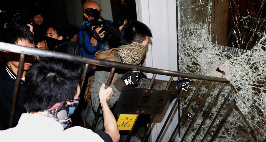 Περίπου δέκα μασκοφόροι παραβίασαν είσοδο του Κοινοβουλίου, ενώ τουλάχιστον ένας εξ αυτών κατάφερε να εισέλθει στο κτήριο πριν εκδιωχθεί, σύμφωνα με την εφημερίδα Apple Daily.