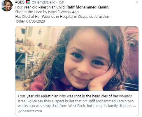 Σύμφωνα με τις ισραηλινές αστυνομικές αρχές, η σφαίρα που έπληξε στο κεφάλι την τετράχρονη Ραφίφ είναι από το όπλο αγνώστου δράστη, ο οποίος φέρεται να πυροβόλησε πάνω από το τοίχος του αίσχους που χωρίζει την Ιερουσαλήμ και τη Δυτική Οχθη. Αυτό όμως θεωρείται αδύνατον από την οικογένεια της άτυχης μικρούλας, αφού το σπίτι τους βρίσκεται αρκετά μακρυά από το τείχος και, σύμφωνα με τις καταθέσεις τους, κανείς εκ των περίοικων δεν άκουσε κανένα πυροβολισμό. Μάλιστα, αρχικά η οικογένεια είχε νομίσει ότι το κοριτσάκι τραυματίστηκε μόνο του, έπεσε παίζοντας, και μόνον όταν οι παιδονευροχειρουργοί που την εγχείρησαν βρήκαν τη σφαίρα κατάλαβαν τι είχε συμβεί.