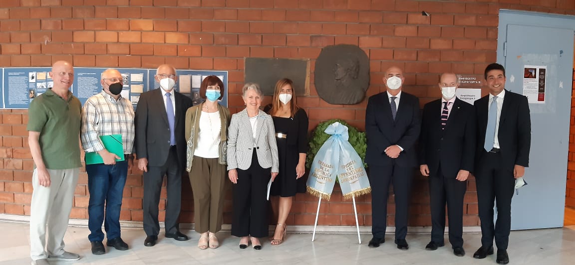 Πριν την έναρξη των ομιλιών, πραγματοποιήθηκε κατάθεση στεφάνου από την πρέσβειρα της Αργεντινής στην προτομή του Σάκη Καράγιωργα, πρύτανη του Παντείου Πανεπιστημίου που στην περίοδο της Χούντας είχε αναπτύξει έντονη αντιδικτατορική δράση. Η Πρύτανης, Χριστίνα Κουλούρη, έκανε λόγο για «μία ξεχωριστή στιγμή για το πανεπιστήμιο που ανοίγει διάλογο με τις χώρες της Λατινικής Αμερικής, με τις οποίες συνδεόμαστε με μακρά φιλία». Η ίδια ως ιστορικός, χαιρέτησε την πρωτοβουλία του καθηγητή Καλτσώνη ώστε να «θυμηθούμε κάποια δεδομένα, τα οποία αφορούν με τη Λατινική Αμερική και συγκεκριμένα την Αργεντινή, αλλά υπερβαίνουν τη γεωγραφική αυτή η περιοχή και αφορούν γενικότερα ζητήματα ιστορίας της αποικιοκρατίας, εθνικής χειραφέτησης και διαδικασίας αποαποικιοποίησης.
