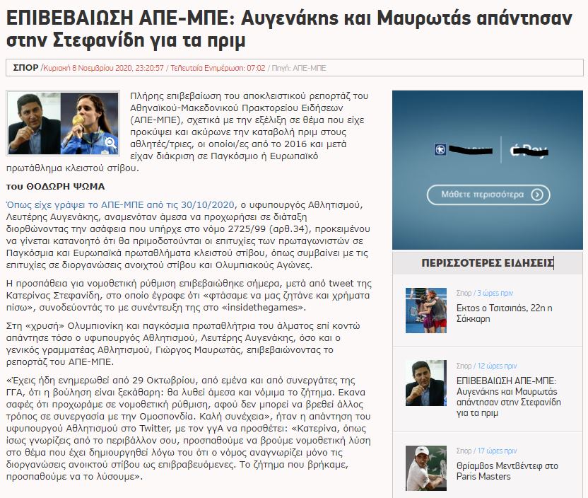 Το ΑΠΕ-ΜΠΕ είδε την απάντηση Αυγενάκη, αλλά δεν είδε όσα έγραψε η Στεφανίδη