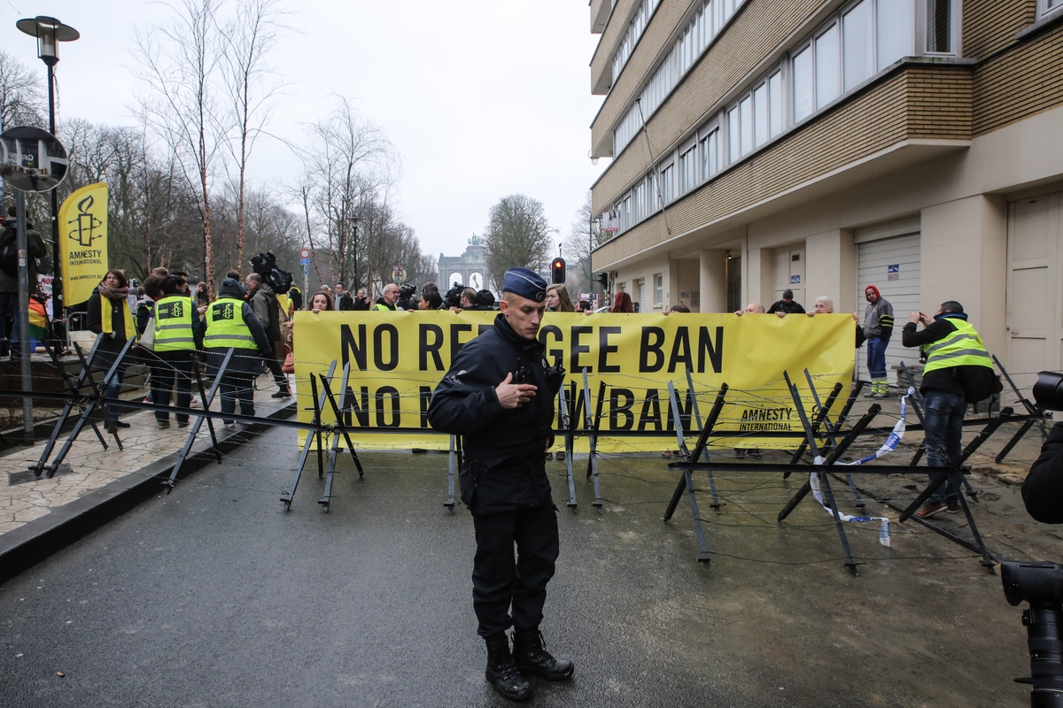 Ενώ η ευρωπαϊκή συνοικία των Βρυξελλών βρίσκεται υπό αυστηρή αστυνομική επιτήρηση, οι διαδηλωτές πρόκειται να κινηθούν προς τους θεσμούς της ΕΕ, όπου είναι προγραμματισμένες οι επόμενες συναντήσεις του Πενς, με τους προέδρους Ντόναλντ Τουσκ του Ευρωπαϊκού Συμβουλίου και Ζαν-Κλοντ Γιούνκερ της Ευρωπαϊκής Επιτροπής.