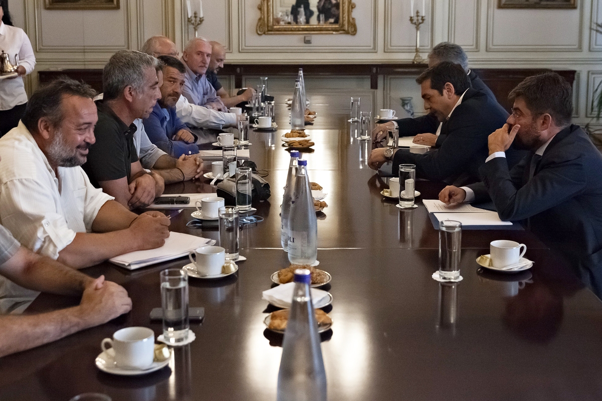 Στιγμιότυπο από τη συνάντηση της αντιπροσωπείας ΠΟΕ-ΟΤΑ με τον Αλ. Τσίπρα (Sooc)