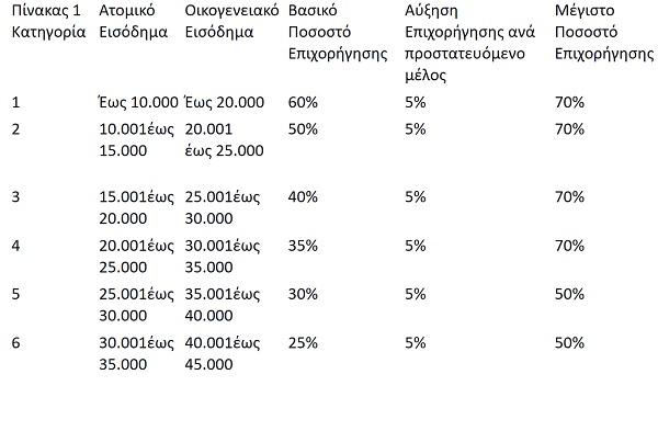 β. πληρούν τα εισοδηματικά κριτήρια των κατηγοριών του παρακάτω πίνακα.